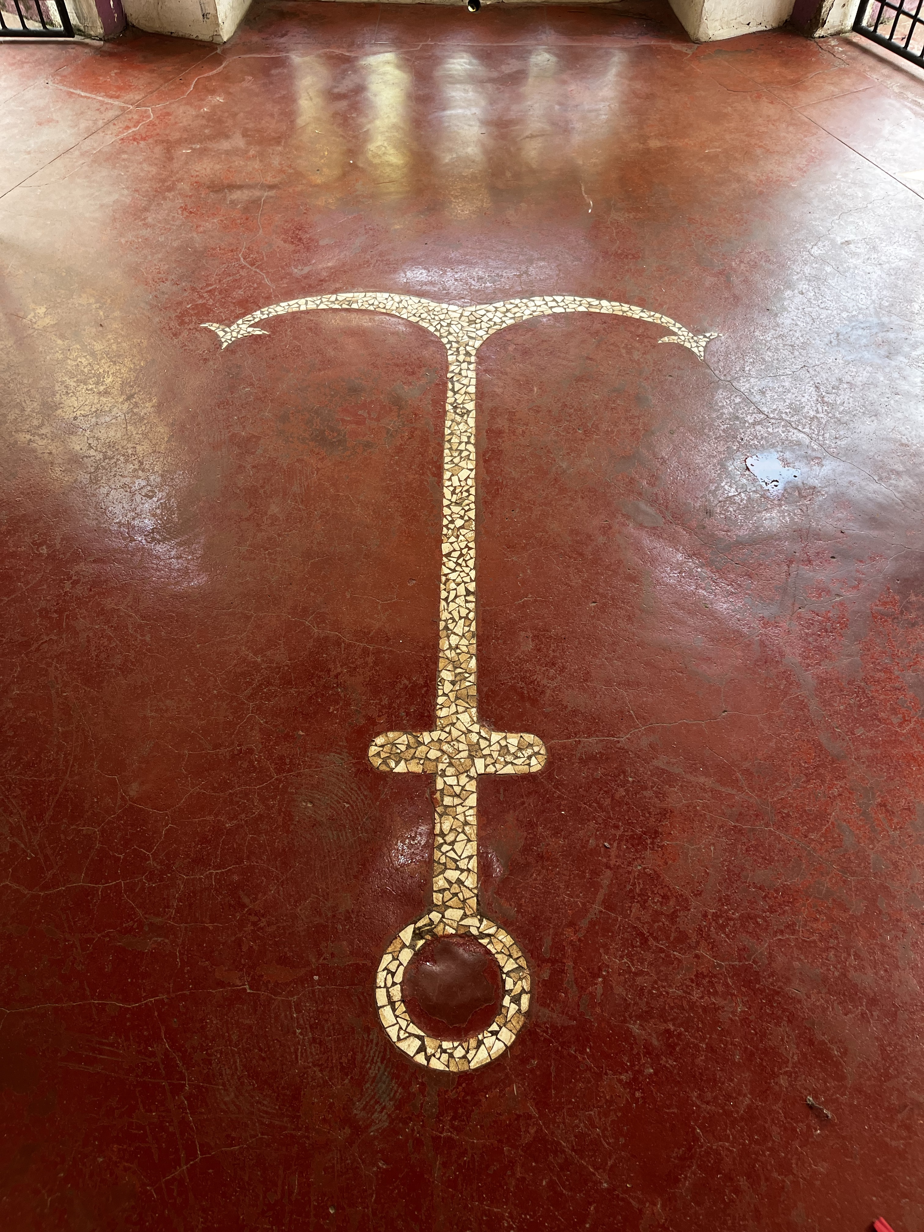 An anchor inscribed on the floor of this house that was built in 1925 with Portuguese lettering by the name of the original owner, Tiago Teles; the anchor being extremely symbolic of the maritime voyages taken by the explorers who came to India in search of spices and finding a home.