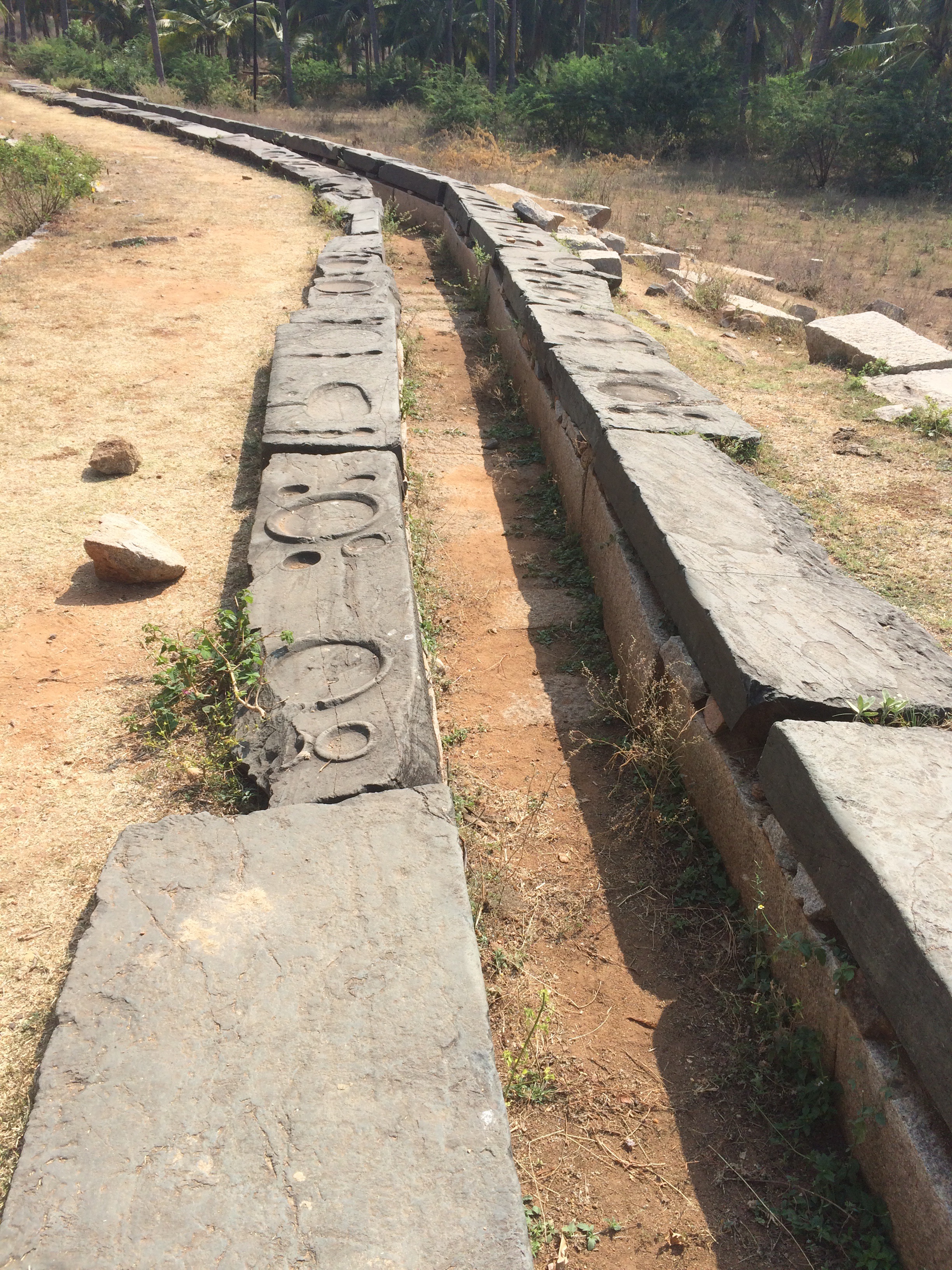 We were told, this was the place where mass meals were served. The channel of water in the middle was to wash hands and also keep the place cool.