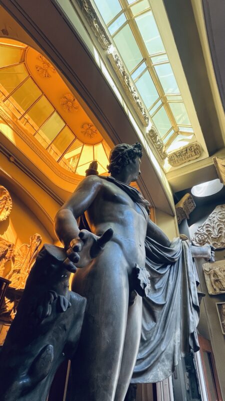 Apollo Belvedere – the museum’s most prominent statue – stands under a glass dome that filters in natural light. But Soane set the statue against the backdrop of yet another dome fitted with ochre glass creating a sunset-like effect. This real-life chiaroscuro of light and shadows was the hallmark of Soane’s work at the bank, but also creates a mournful ambience akin to a sense of loss he felt as Britain built its new identity by forsaking the old.