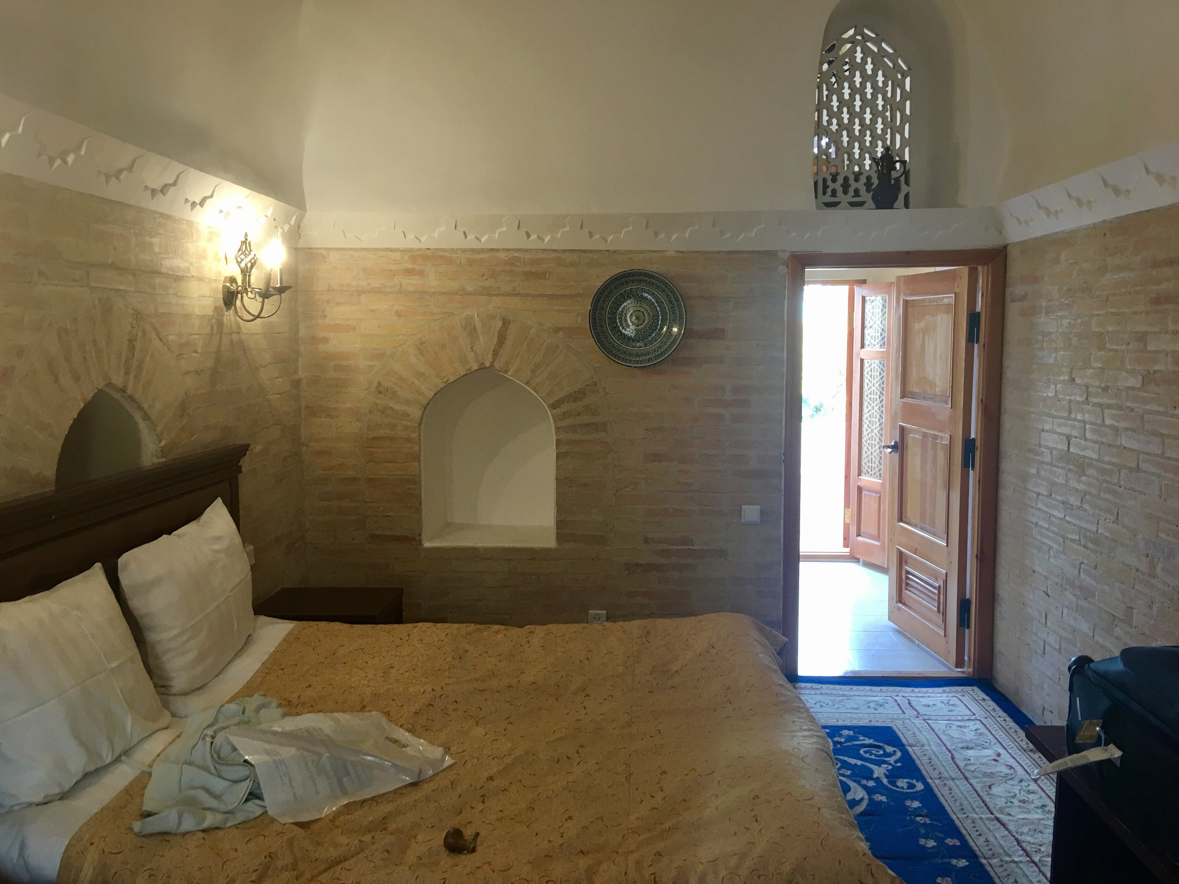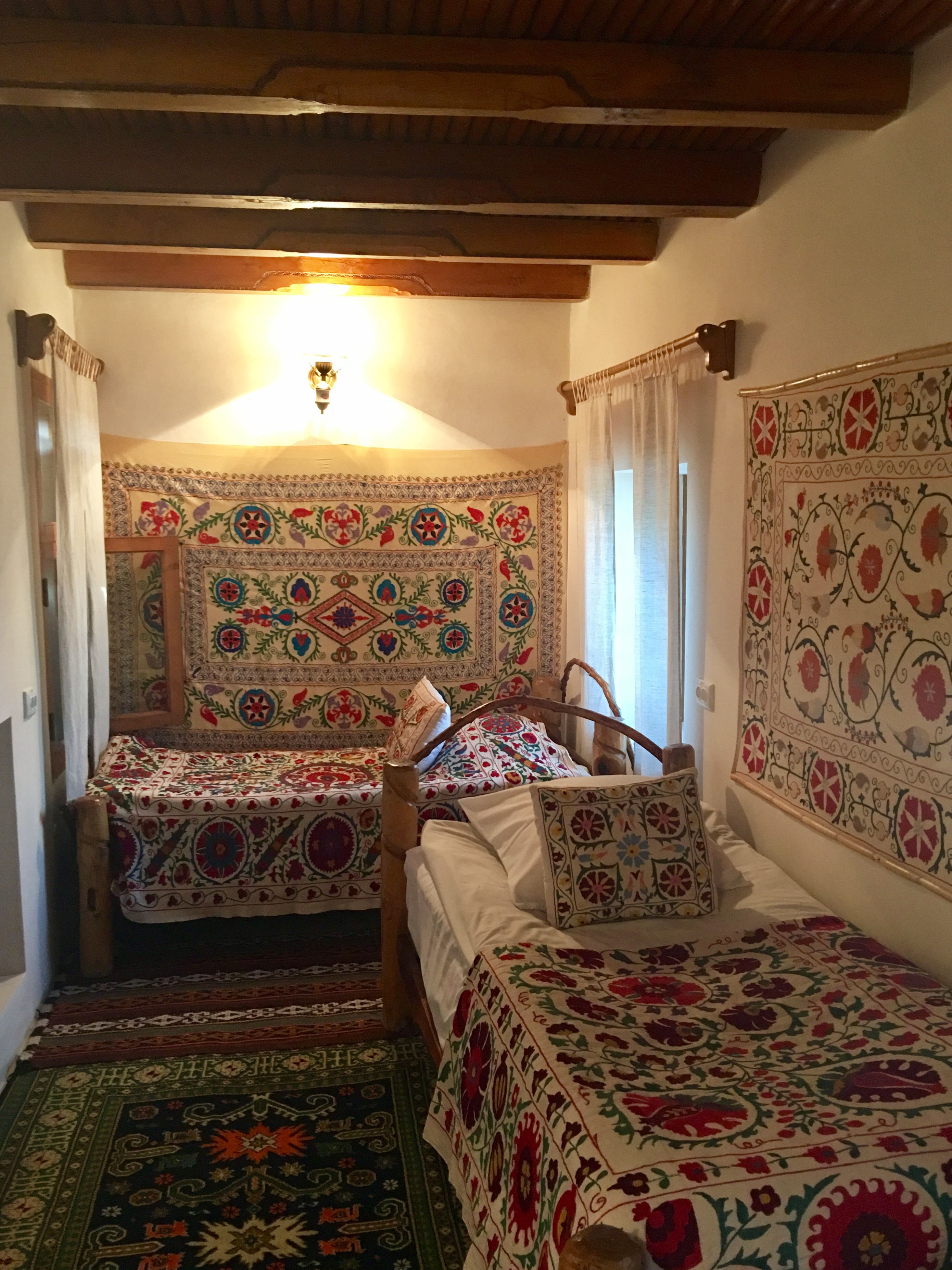 My hotel in Bukhara was Hotel Amulet, a charming little place that was formerly a madrassah (my favourite in all of Uzbekistan) The room smelled of clean sheets and toilet was clean. Internet was strong. I even got my pants laundered for 3000 Cym and it came back smelling like fresh cotton sheet I was sleeping on.