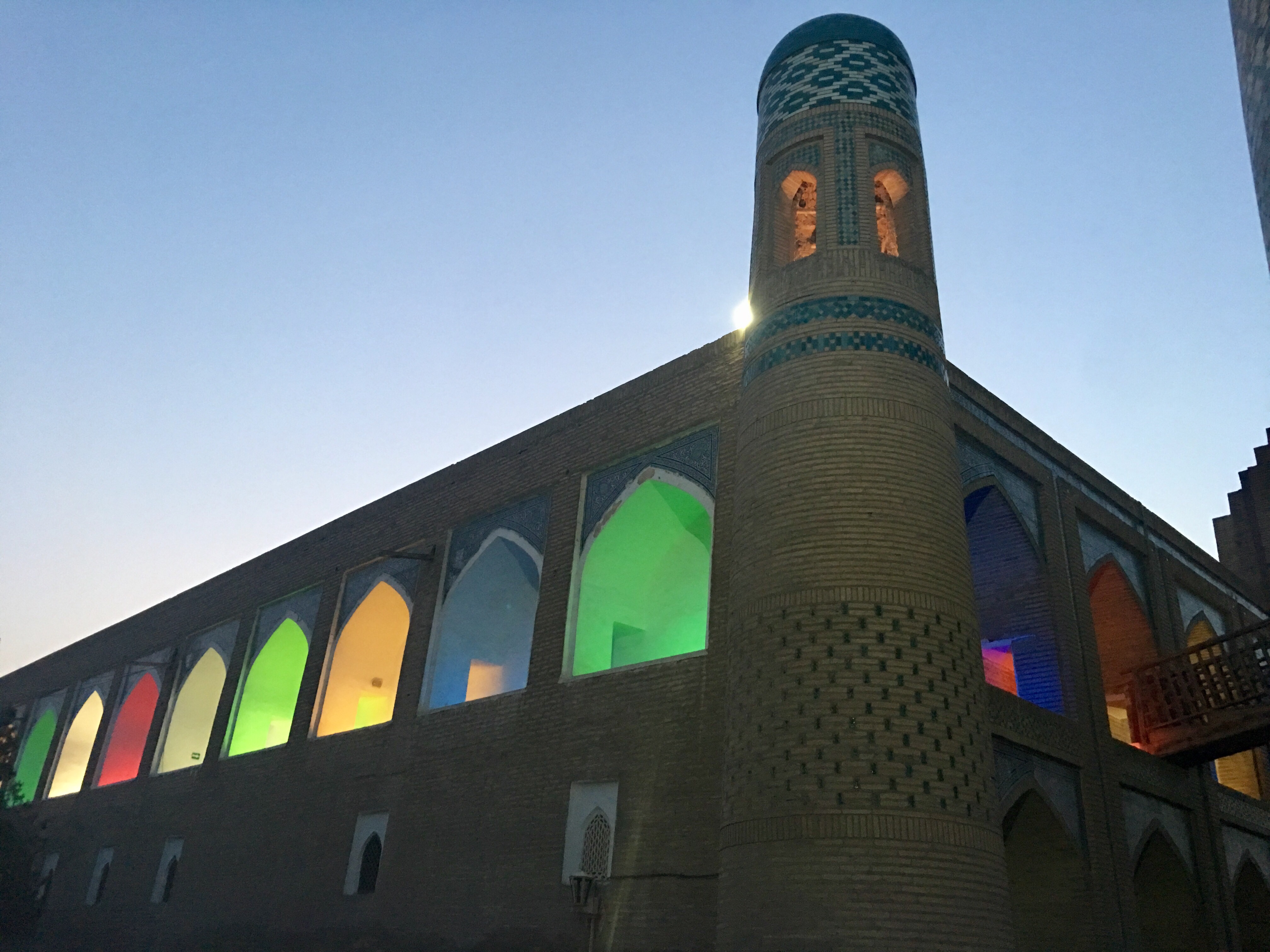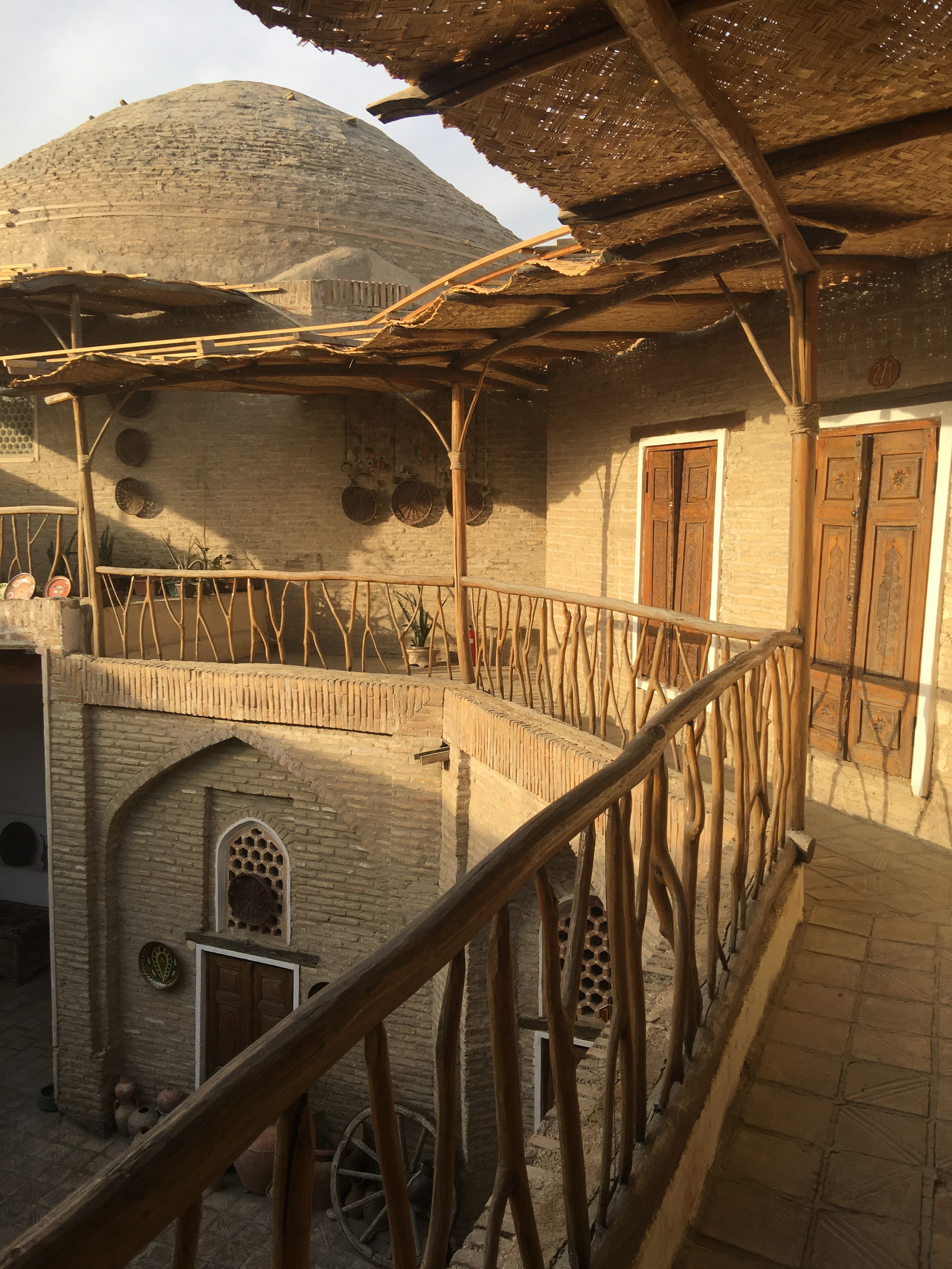 My third halt was Khiva. Here, Hotel Orient is inside the Ichan Qala fortress. As with many madarassahs inside the old city, Hotel Orient was also converted into a hotel. It has a large courtyard where internet is available and is the strongest. Rooms are clean with a small balcony adjoining the bathroom that gives the room some light during the day. There are no windows and the beds are tad uncomfortable. In the night, it was hard to sleep because of lack of ventilation and the hard bed. There is a/c in every room but I didn’t want the noise and artificial ventilation in a small enclosed room.