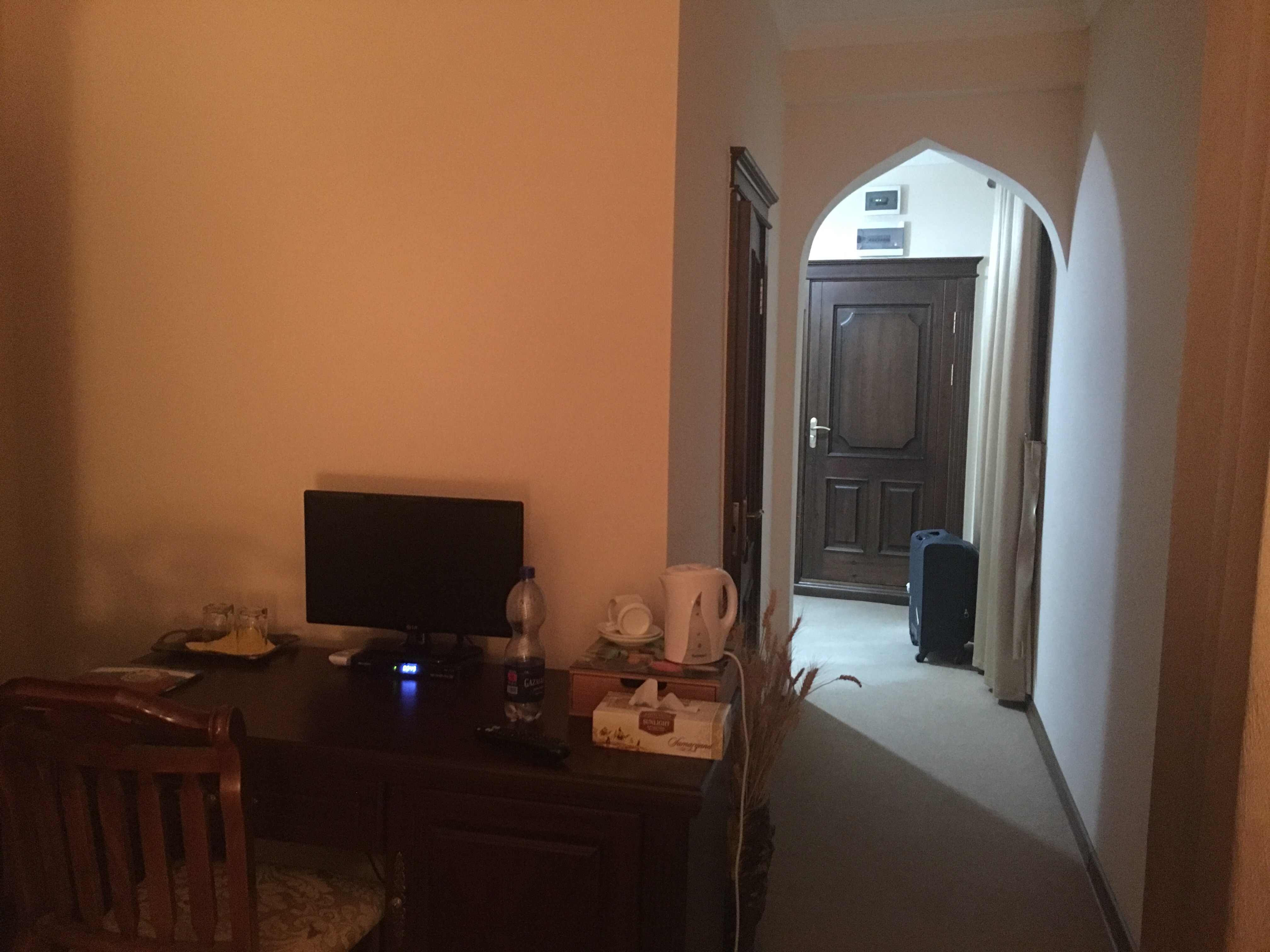 Nukus was my second port of call. Here, I chose a hotel called Rahnamo. The quality of hotel was very basic but it was squeaky clean. The bed was comfortable and an elderly lady made me a breakfast of pancakes with poached apricots, tea and naan. The meat eaters would have got sausages and eggs too. Size of the room was good. The only downside here was the internet. It was very choppy. Also, when it comes to English, there were not very conversant. As stay in Nukus is typically only 1 night, I think these are minor things to be concerned about.