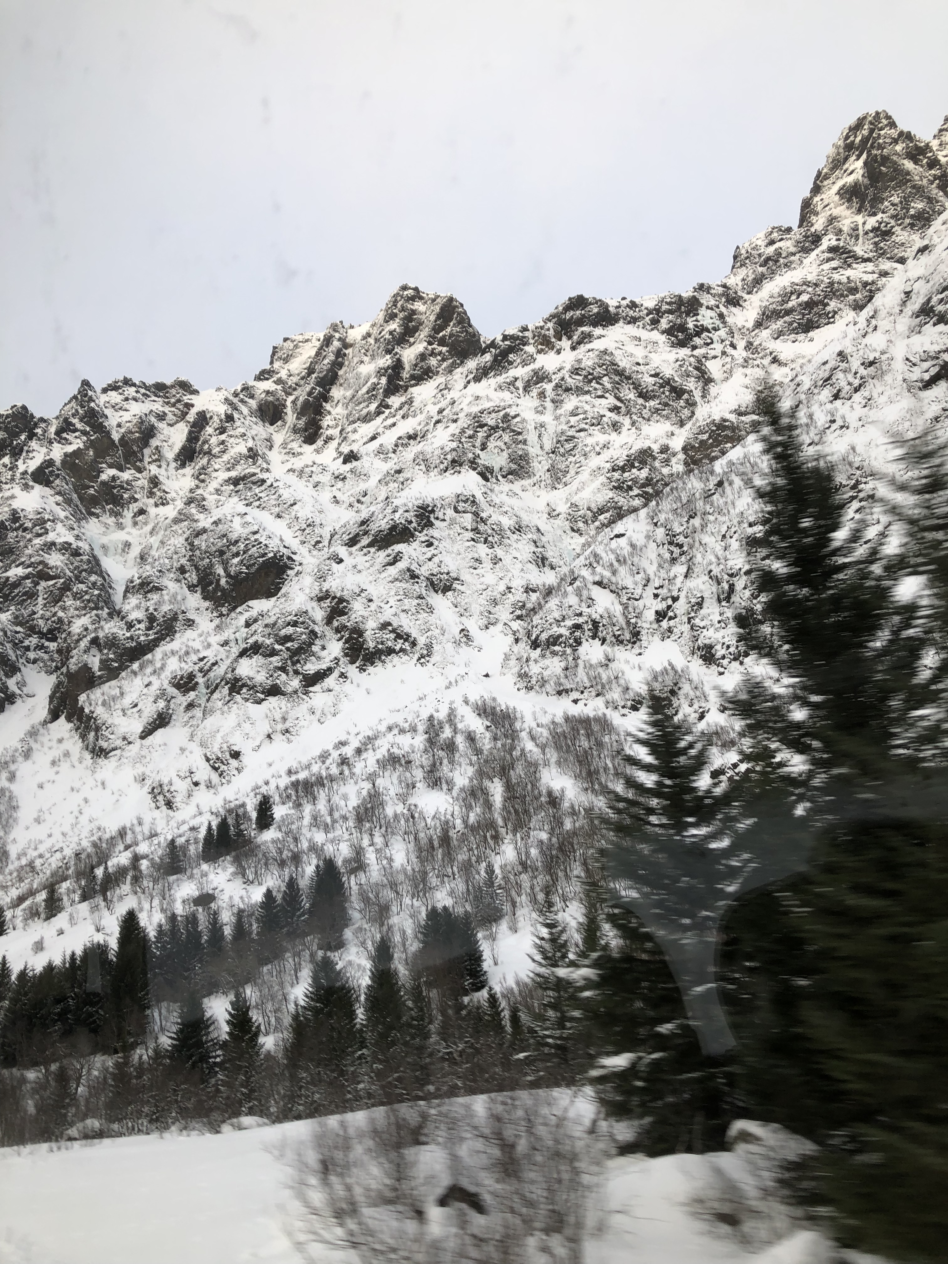 Lofoten Islands in Norway have one of the most stunning landscapes. Thanks to Instagram, the red cabins on snowy beach in Moskenes has become really popular. Our aim was to drive down from Svolvaer to Moskenes, which takes about 2 hours, but because of the train disruption, we ended up losing one day to a bus journey. It didn’t let us down. We even spotted moose by the side of the road.