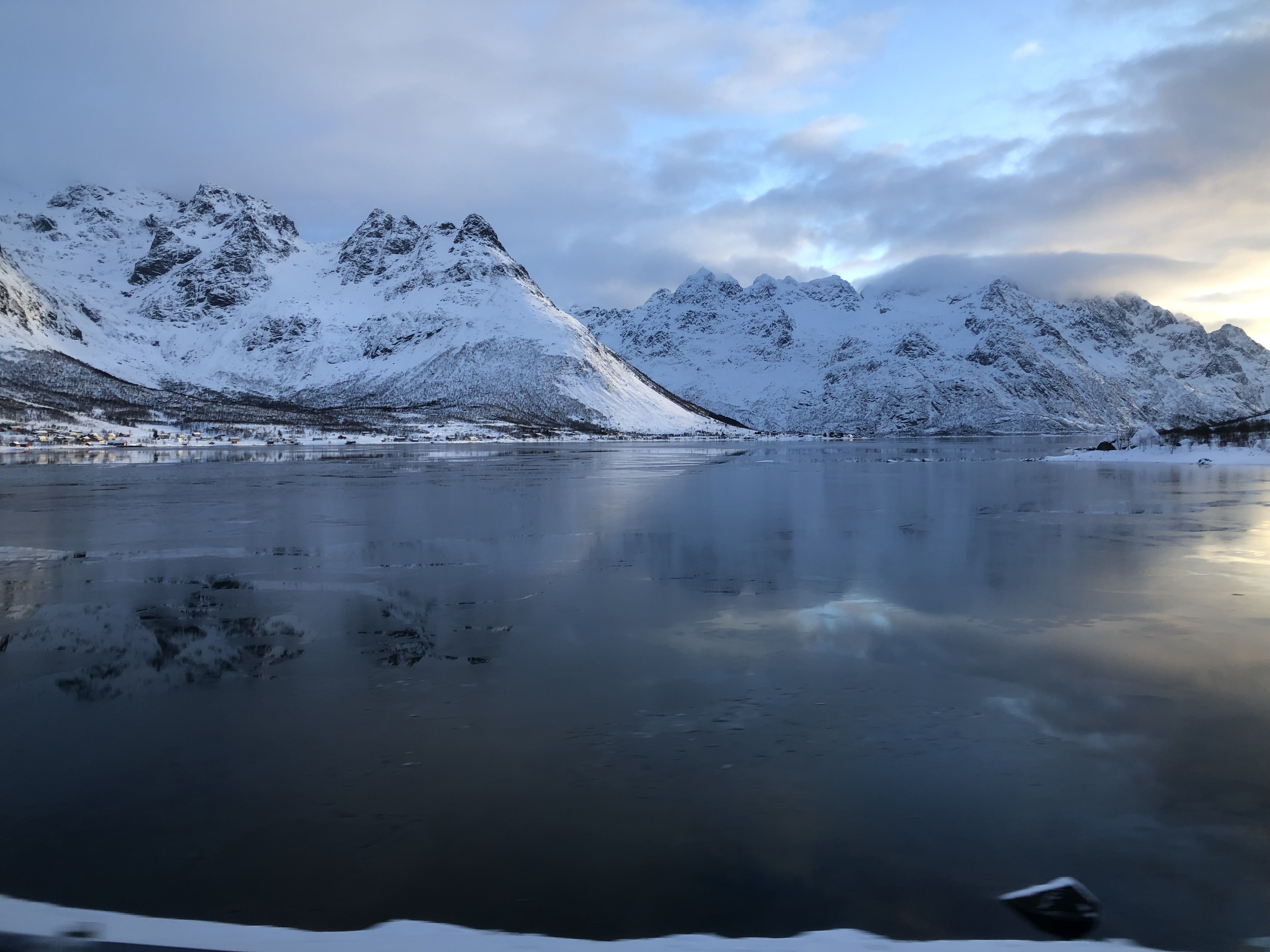 The Norwegian fjords are a combination of snowy mountains and crystal clear water. On a sunny day the bus journey makes for one of the most beautiful journeys you will ever make in your life, compensating for the train journey we missed and the views it promised. The 3 1/2 hour journey from Narvik starts at 9.30am and reaches Svolvaer at 1pm.