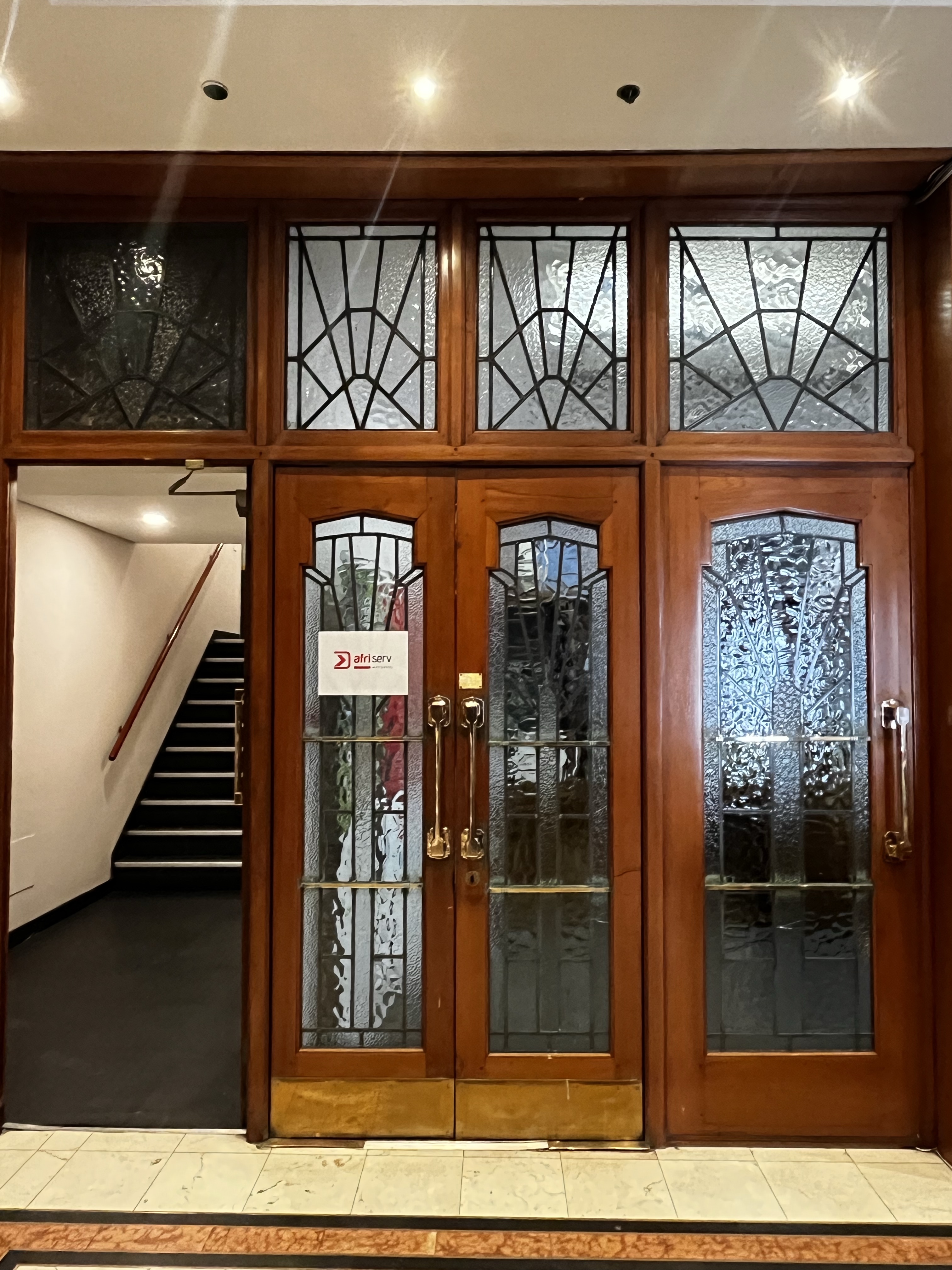 I went in a few times to the lobby and stood there awestruck, hoping someone will take pity on an architecture lover and show me the Assembly Room which was designed as the meeting room for policyholders of The Old Mutual. It is decorated with frescoes by artist Le Roux Smith Le Roux and now privately owned as an apartment. Here is a NYT article that takes peek inside this exquisite apartment with the original artwork preserved.