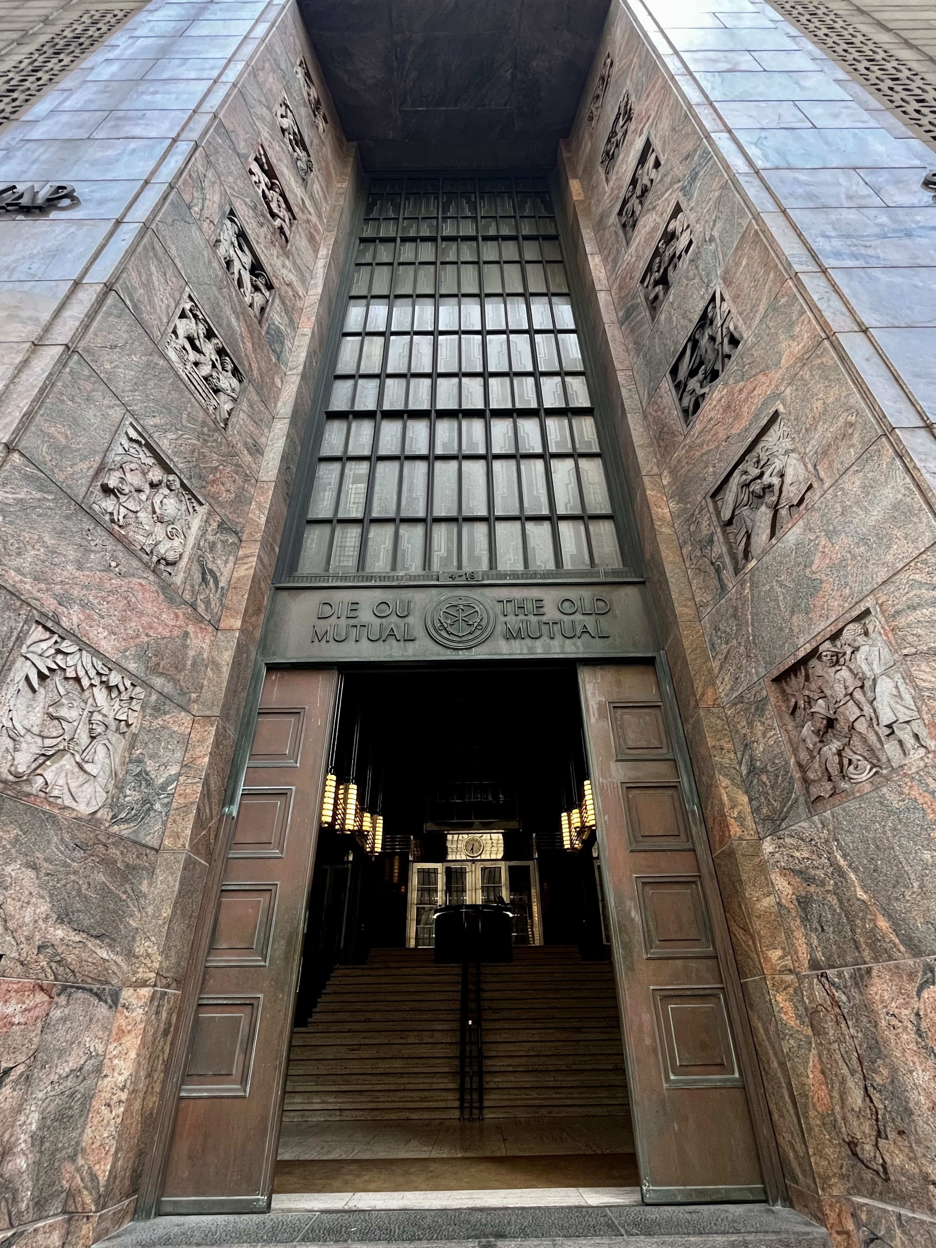An absolute stunner of Art Deco example is the Old Mutual Building on Darling Street.