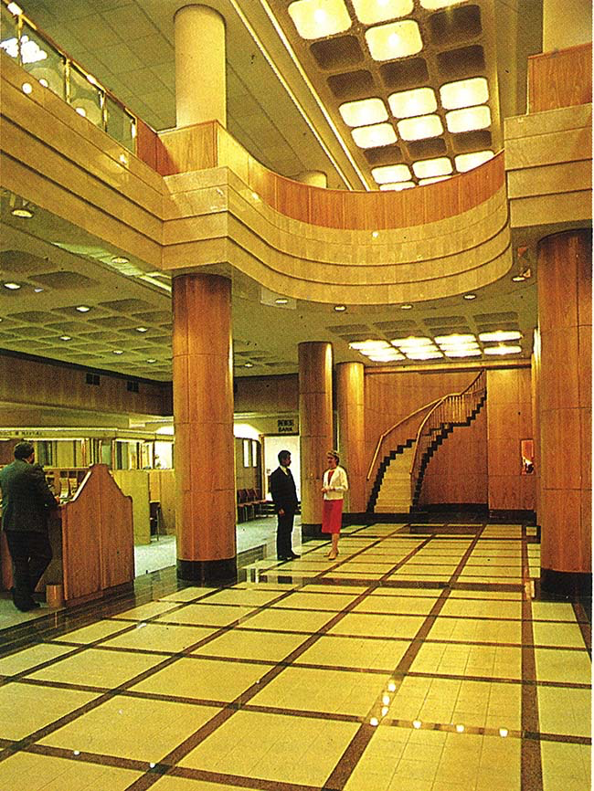 The lobby was built using black marble and gold leaf gilding was used to decorate its ceiling. Friezes on the exterior of the building were done by Italian architects.