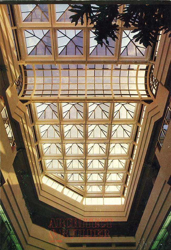 Waldorf Arcade in the heart of Cape Town’s CBD has a post-modernist style architecture with a bold facade, escalators, atrium with a central light well and large columns at the entrance, denoting economic boom of the 80s.