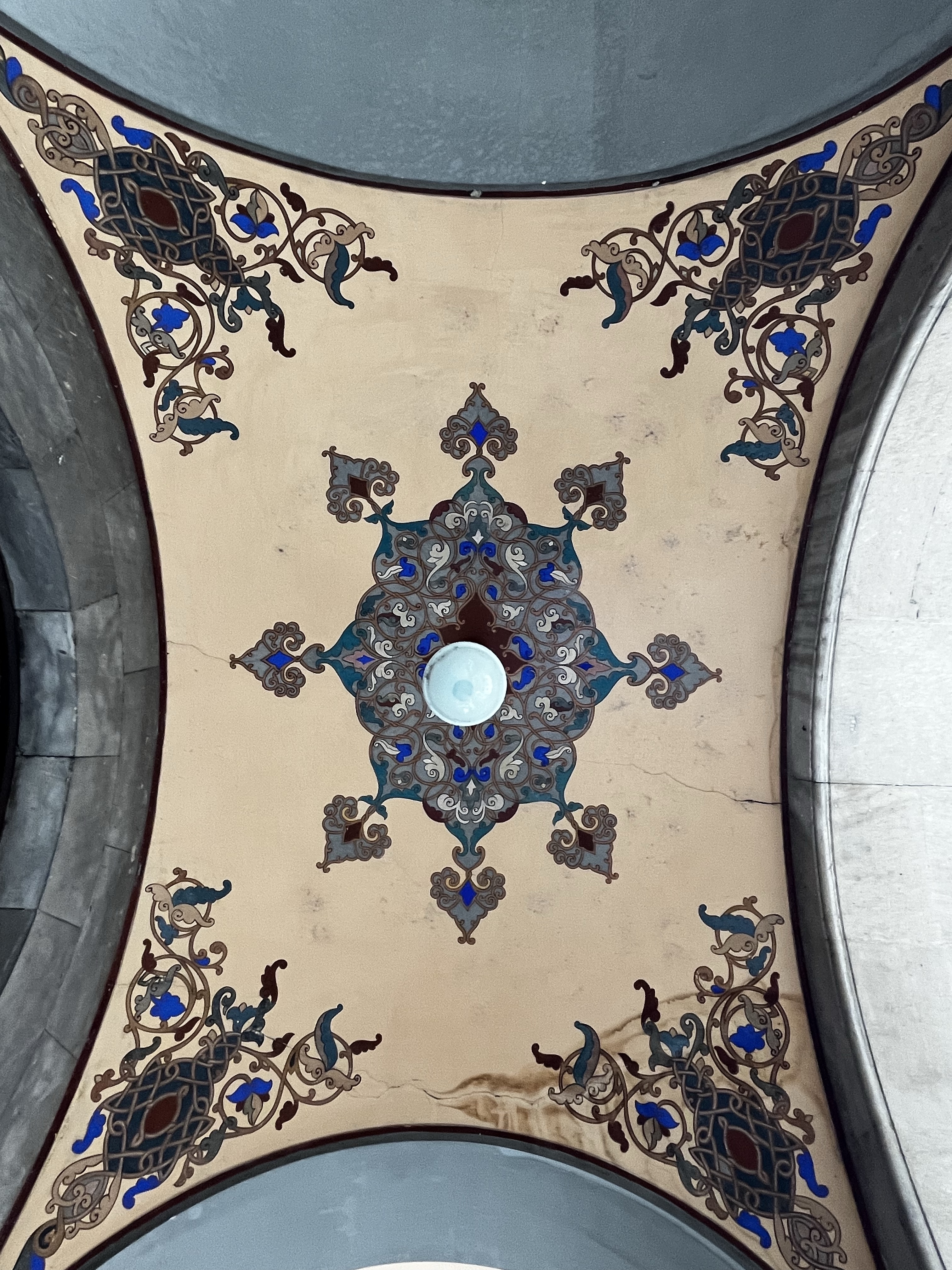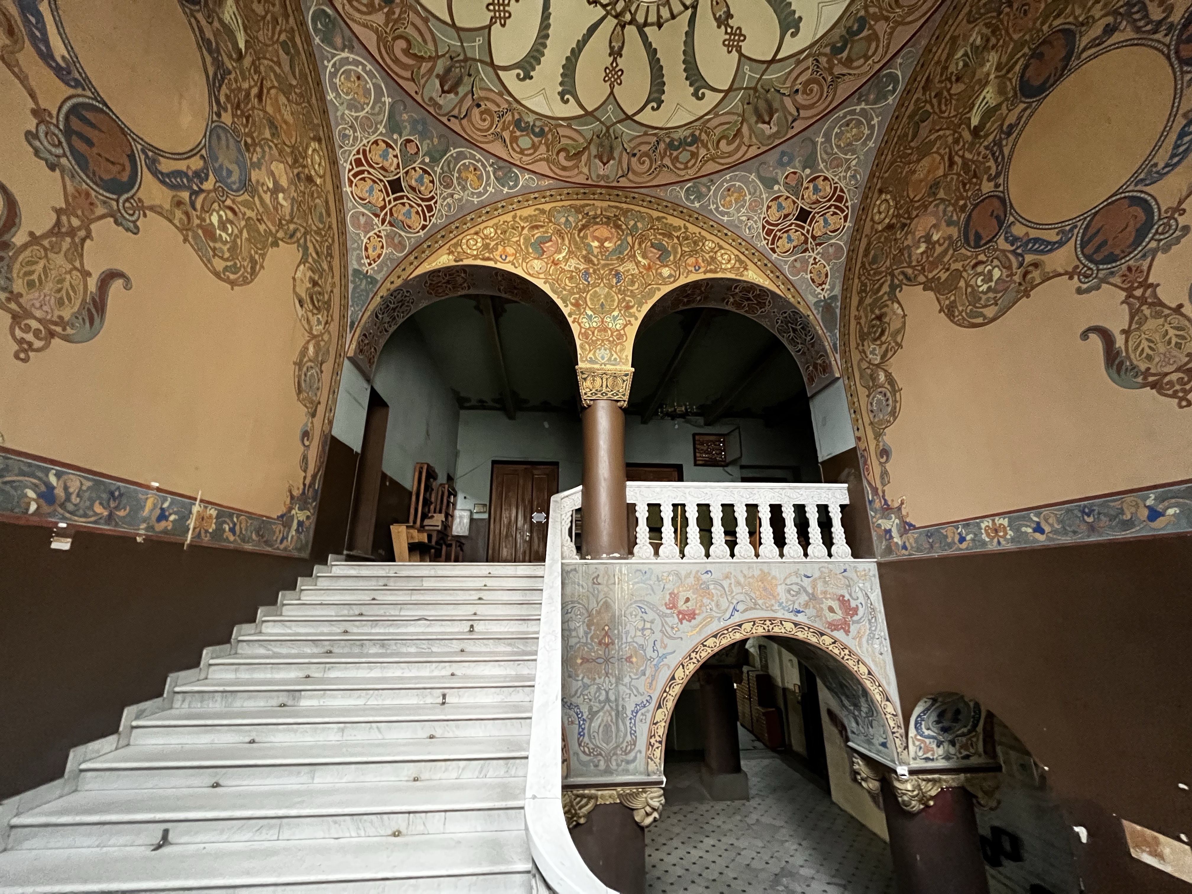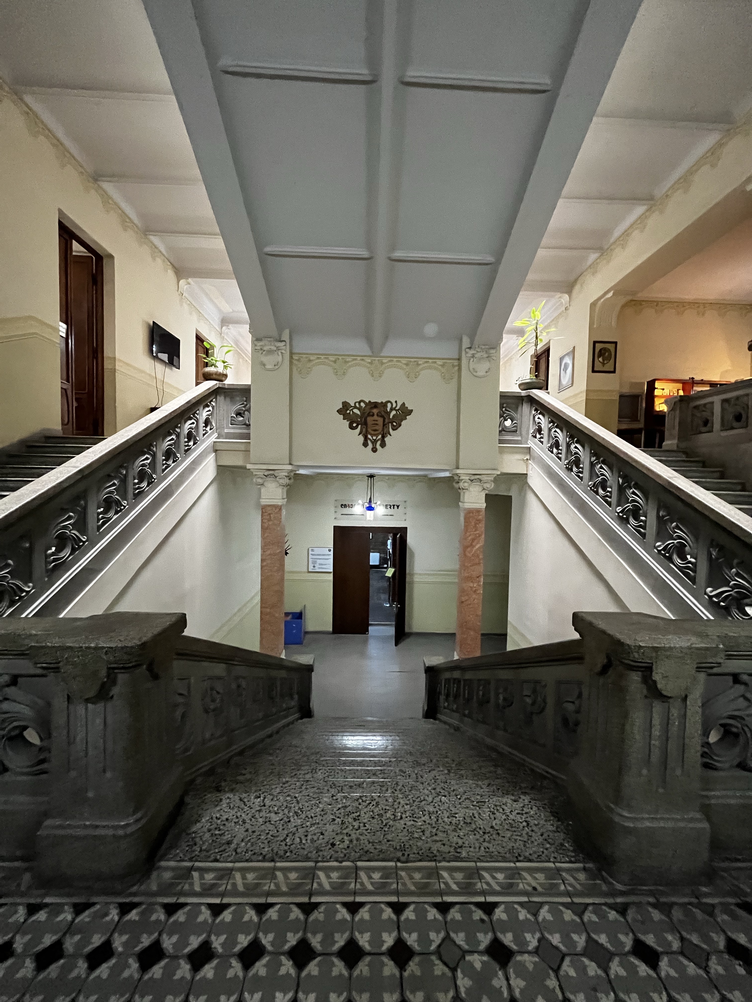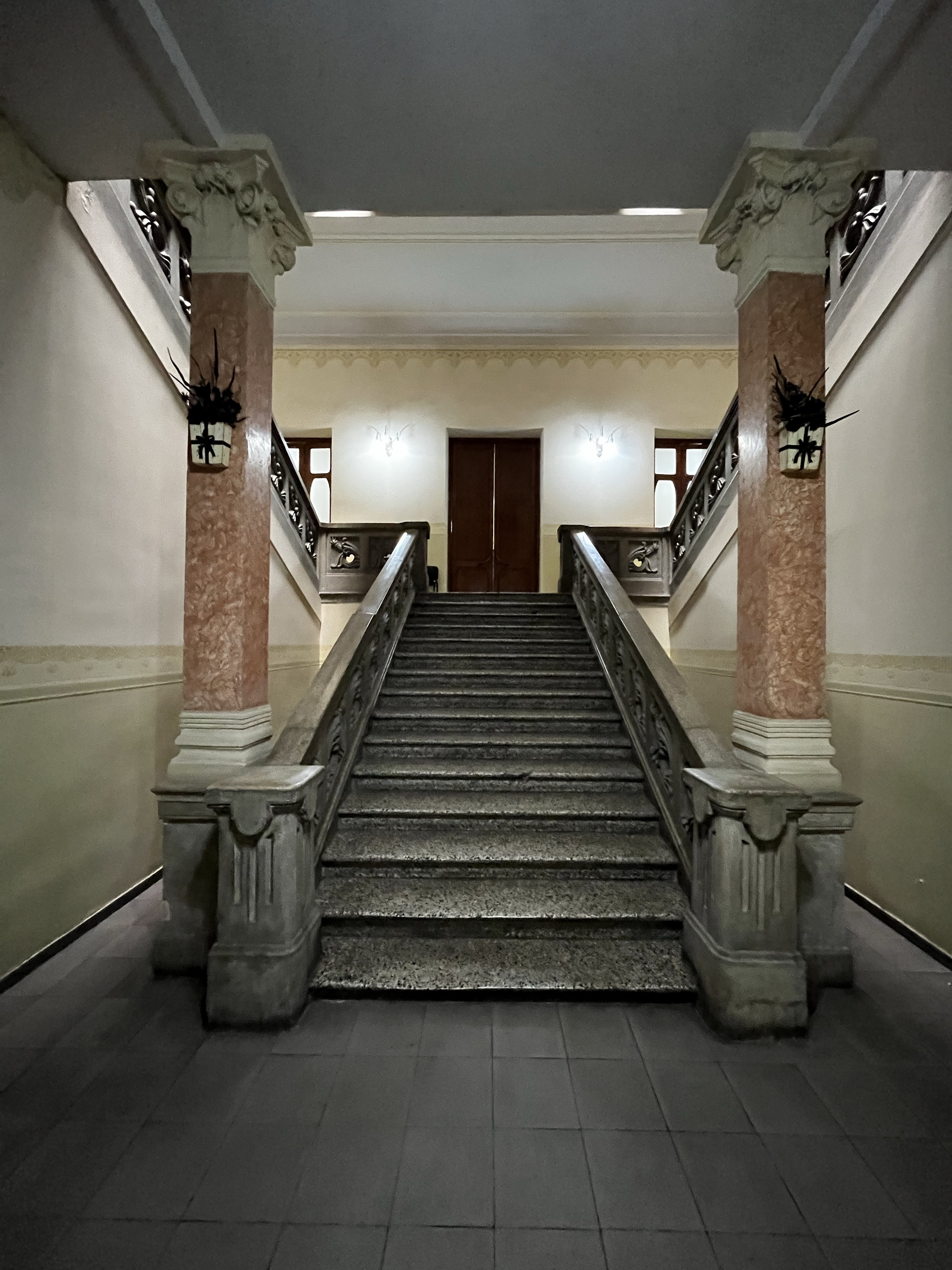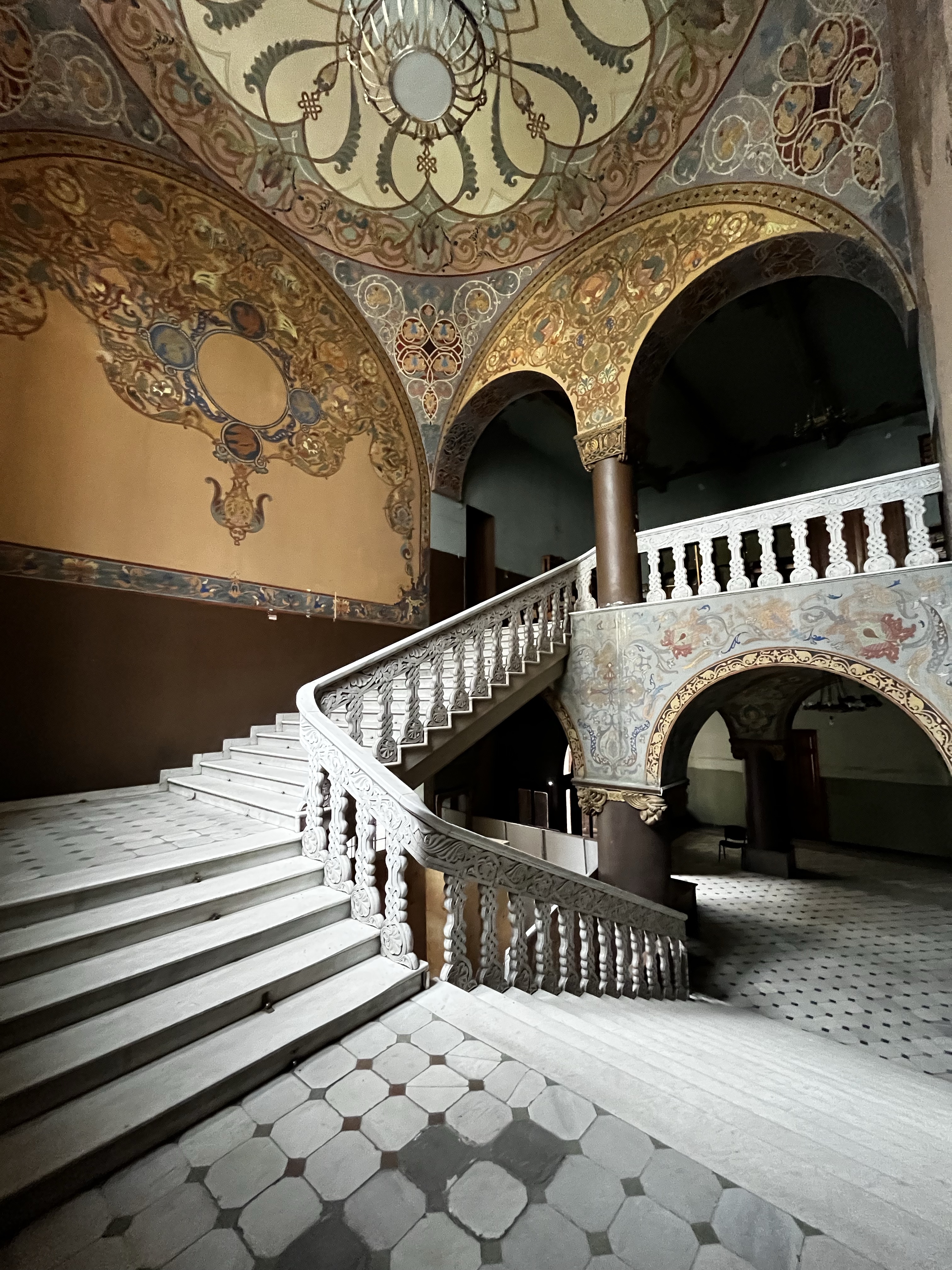 Formerly the office of the State Bank the Art Nouveau building (called Modern Style in Georgia), was designed by architect, Micheil Ohanjanov and built in 1910. The interiors incorporated iron and glass to let in the light, curving lines that emulated the movement and forms of vines and leaves, at the same time adding Neo-classical and Palladian touches from Greek and Roman temples.