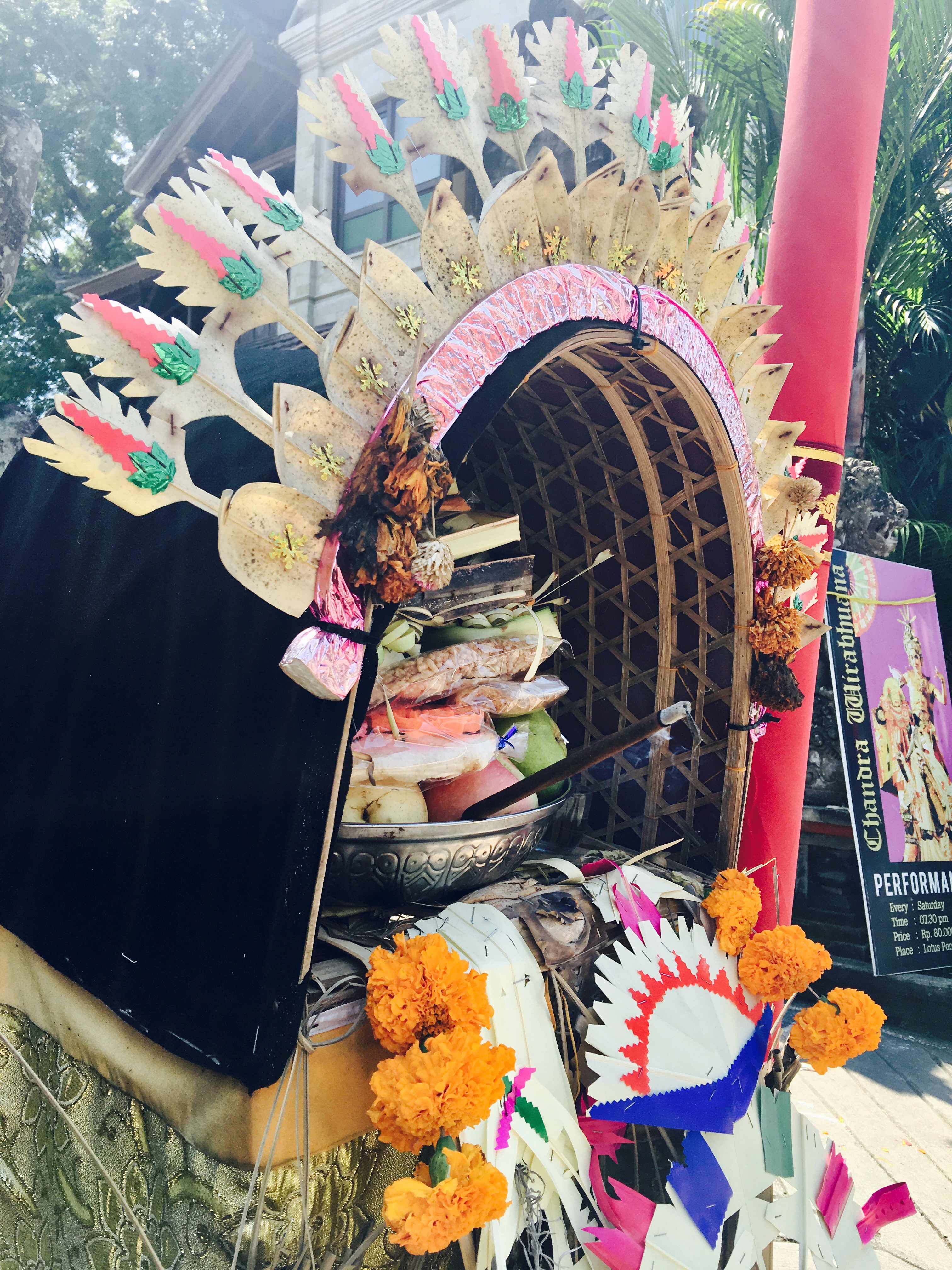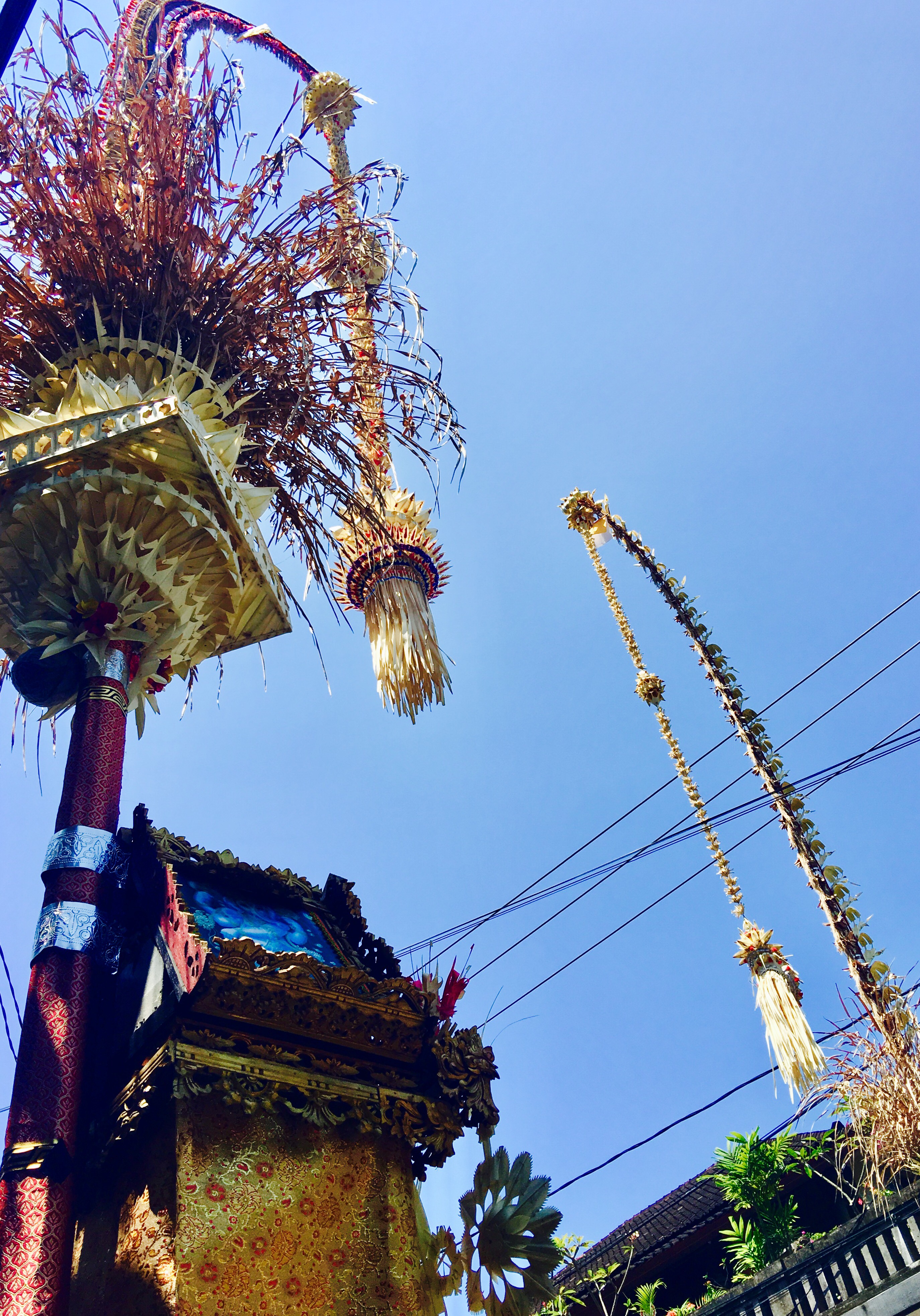 All across Bali, you will see white and yellow colours – in flower decorations, in clothes people wear, adornments like wearing rice grains and turmeric on forehead, offerings to deities and just about everywhere.