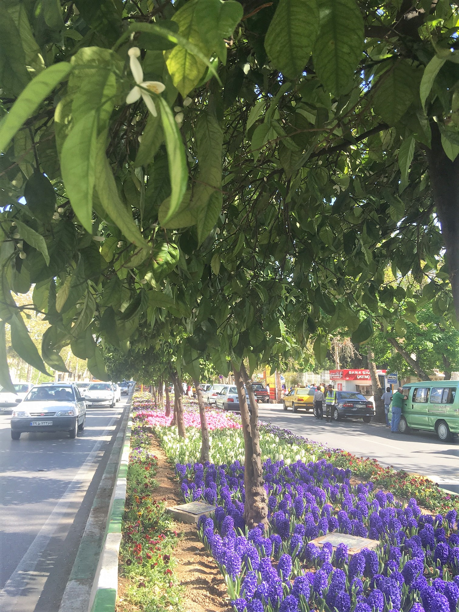 In Shiraz for instance, the boulevards have been laid out with orange blossom trees over a bed of hyacinths, roses and tulips which let out a heady fragrance in spring. In fact, orange blossoms are just about everywhere and the fragrance is intoxicating when passing by even a sole shrub, let alone an entire row. On another road, I saw a long channel of landscaped water canal as the divider.