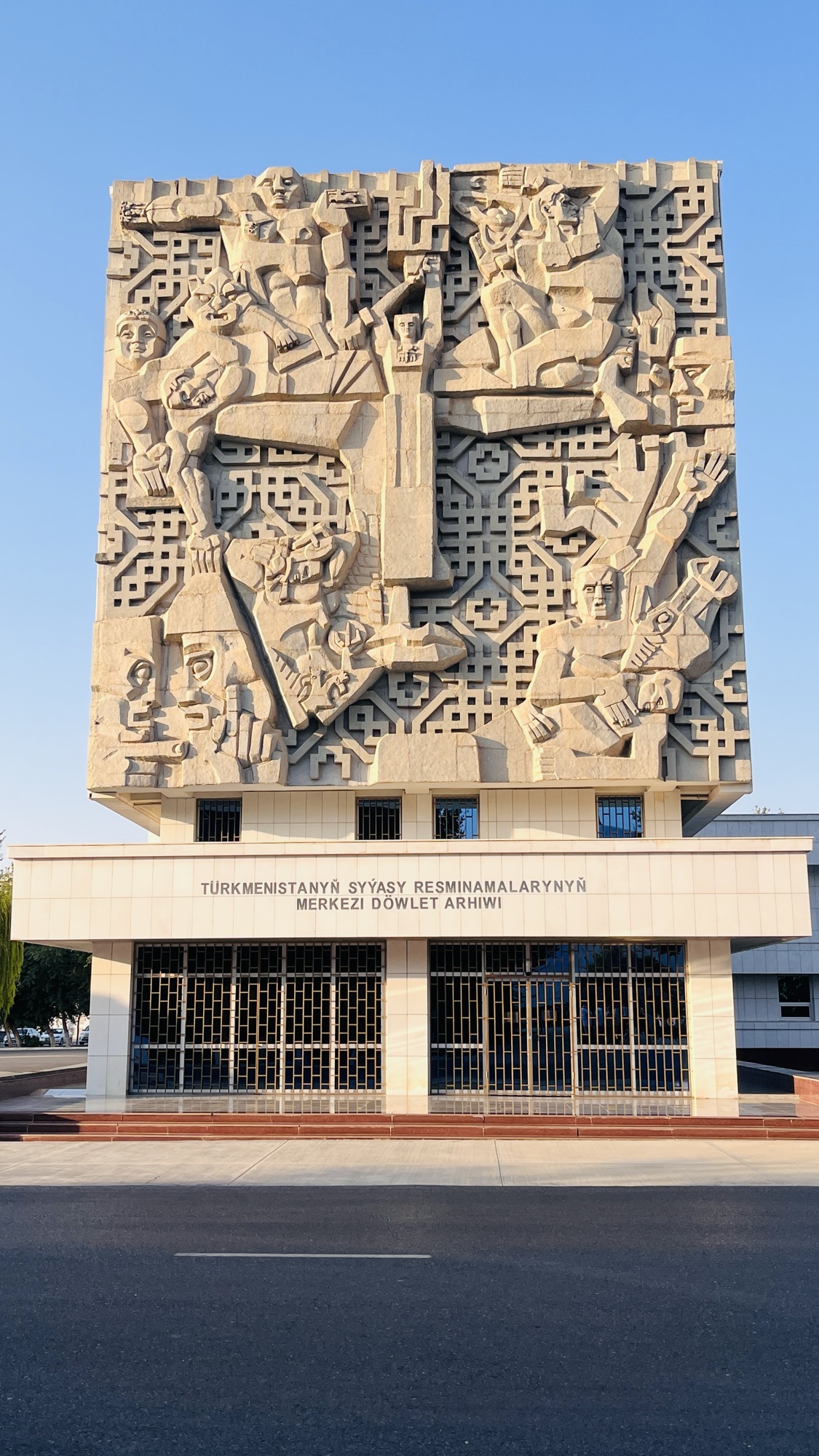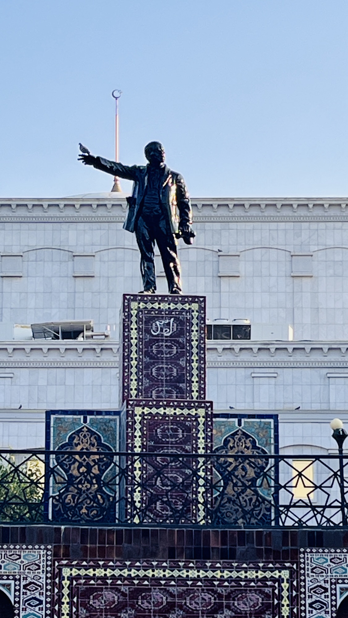 while 90% of Ashgabat’s buildings were destroyed during the earthquake, I did manage to find some relics from the Soviet era in the old part of town. In Lenin Park, Comrade Lenin still stands showing the Bolsheviks the path to the liberation struggle. Nearby is a striking Brutalist mural which no one knew anything about and Pushkin Square named after the eminent poet and social reformist.