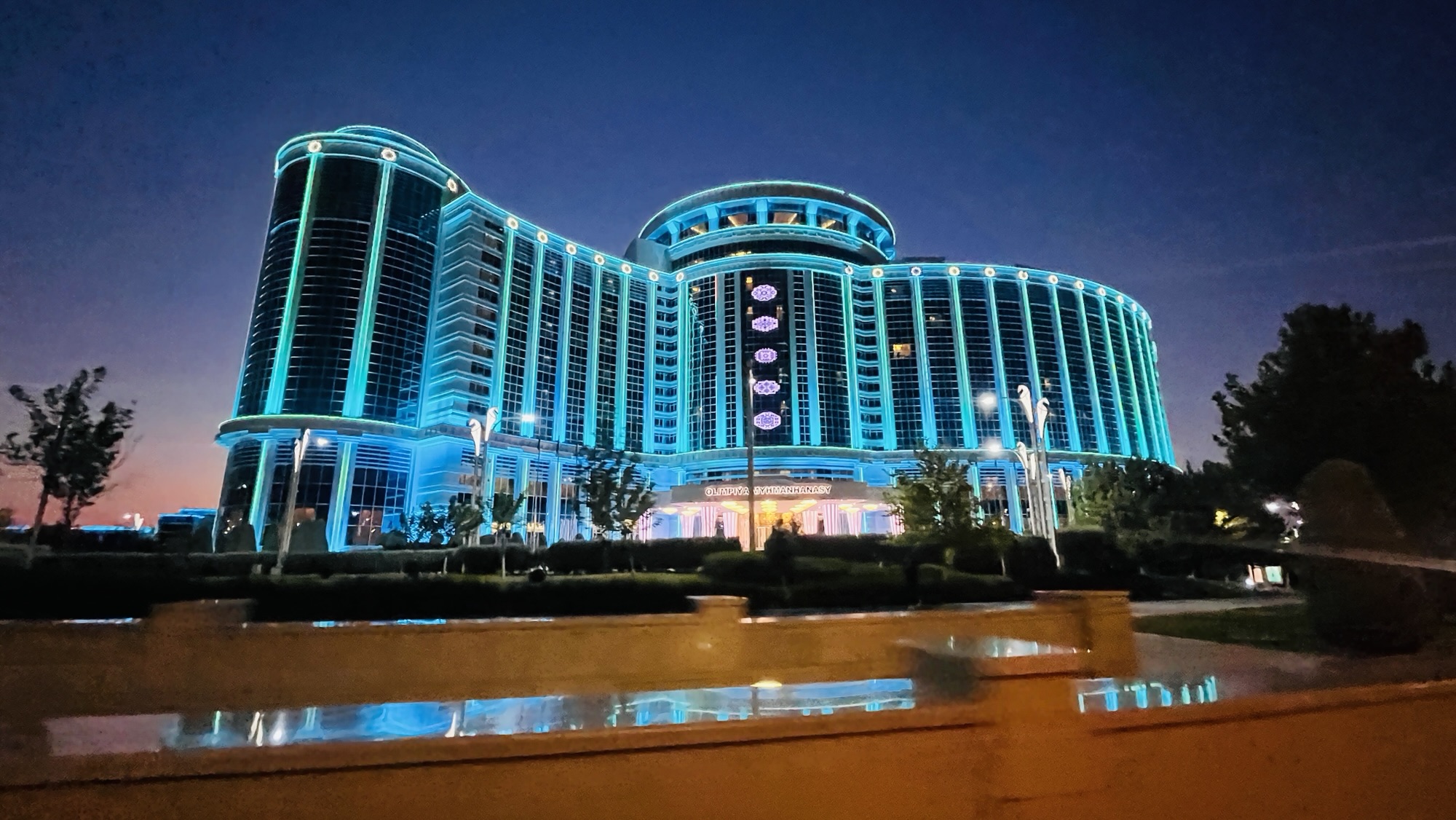 By evening, when white fatigued me, Ashgabat became a LED-lit city drenched in dancing colours.
